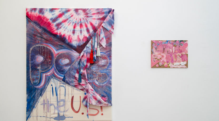 It features a selection of sartorial works set against a backdrop of revisionist “lipstick formalist” paintings to present a dystopian vision of the US anno 2033.